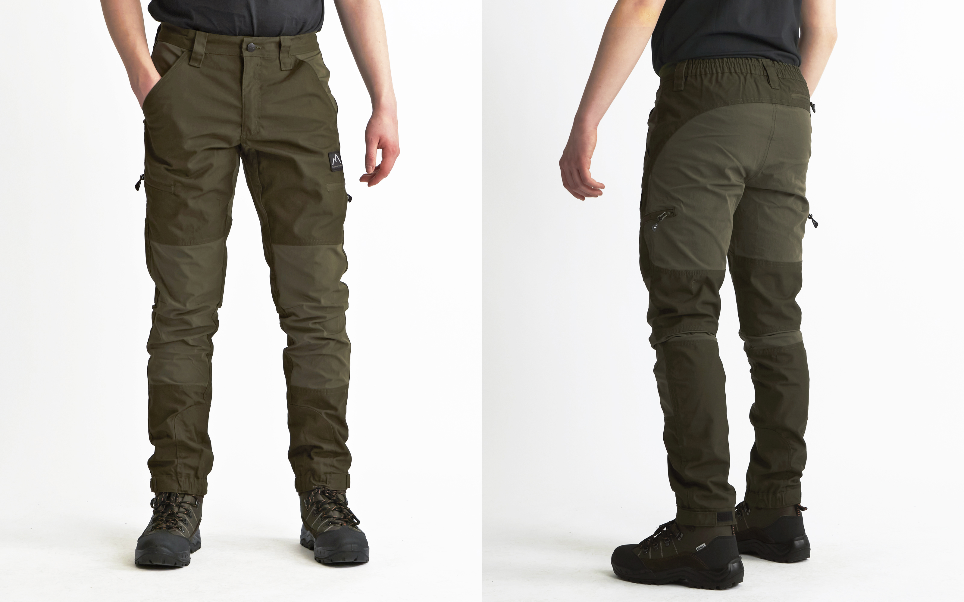 Byxan är utrustad med praktiska lårfickor med dragkedja, samt förstärkta och reglerbara benslut, vilket gör den lika funktionell med arbetsskor som med kängor.