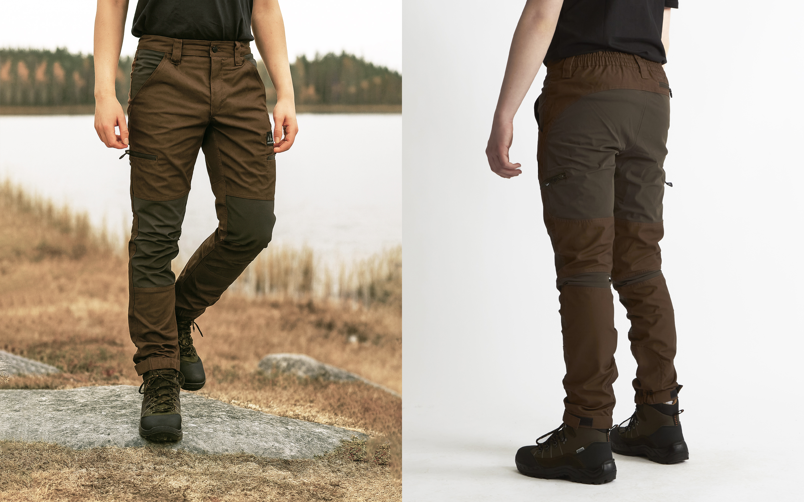 Byxan är utrustad med praktiska lårfickor med dragkedja, samt förstärkta och reglerbara benslut, vilket gör den lika funktionell med arbetsskor som med kängor.