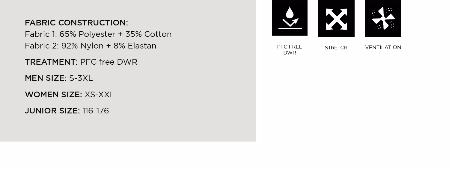 Outdoorbyxa Herr, Bomull i mix med stretch tyg. Anpassad för utomhus aktiviteter, passar perfekt för dig som gillar vara ute i naturen. Byxan har både stretchen och är mycket ventilerande i det val av material, PFC Free DWR - Stretch - Ventilation. Finns i flera färger.