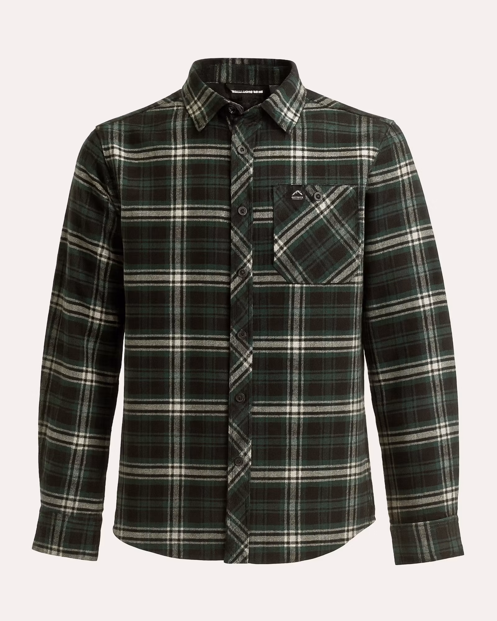 En klassisk rutig flanellskjorta i mjuk bomullsflanell som kombinerar komfort, slitstyrka och tidlös stil. Skjortan har ett garnfärgat rutmönster i mörkgrönt, svart och vitt, vilket ger ett robust och stilrent uttryck som passar lika bra till vardag som till friluftsliv.