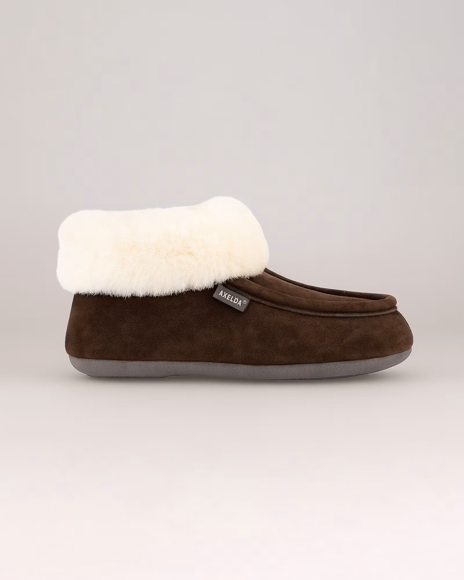 Dubbla material i ovandel: Mocka och fårull för bättre passform och stabilitet.