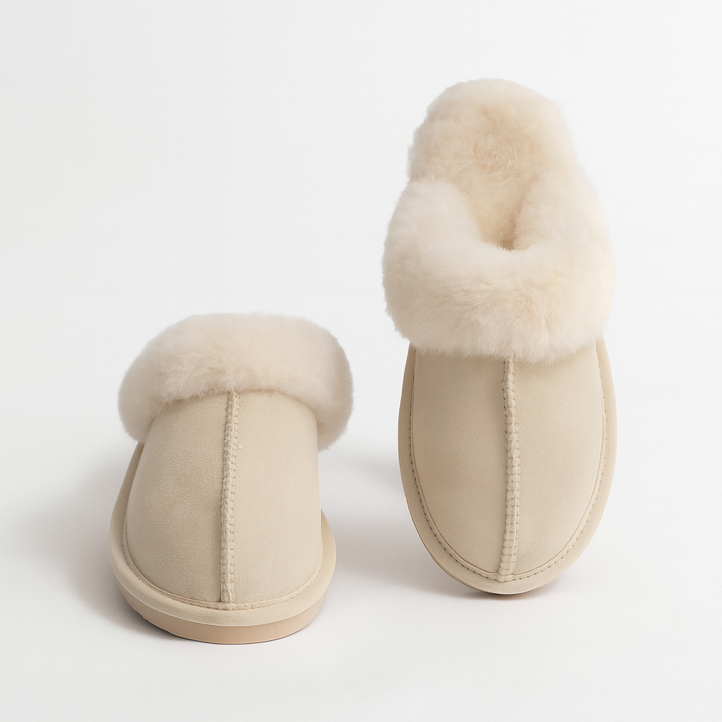 Fårskinn är ett levande naturmaterial som andas, isolerar och formar sig efter kroppen. Dess antibakteriella och smutsavvisande egenskaper håller tofflorna fräscha längre och ger ett behagligt klimat för fötterna året om.
